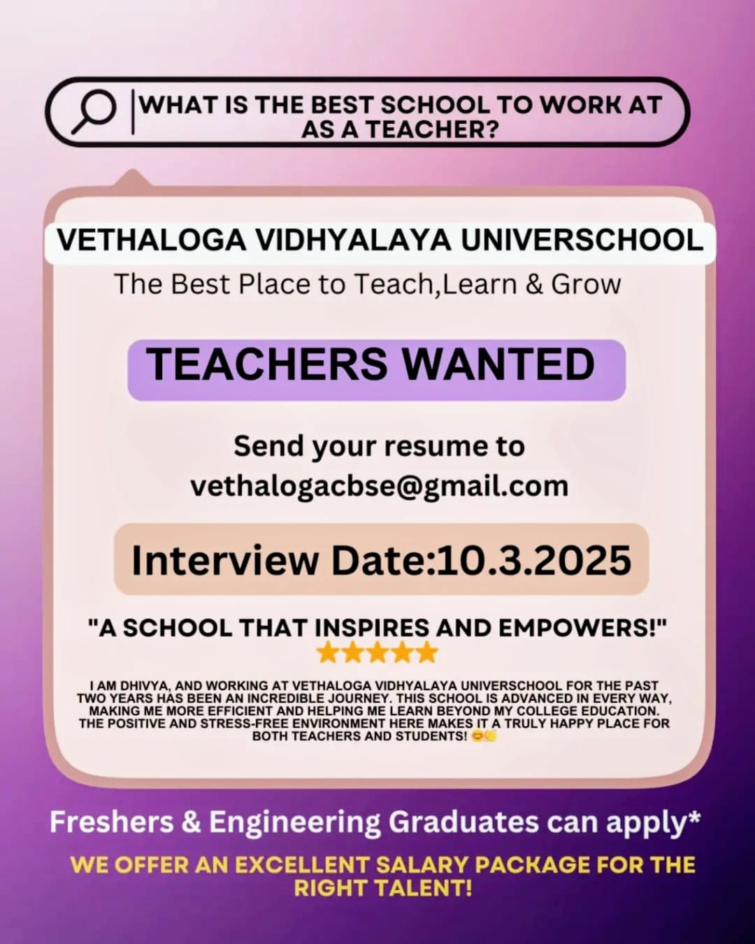 Affectionately known as “குழந்தைகளின் சொர்கம் " by our parents - and we live up to the name every day. What more could a school aspire to be?